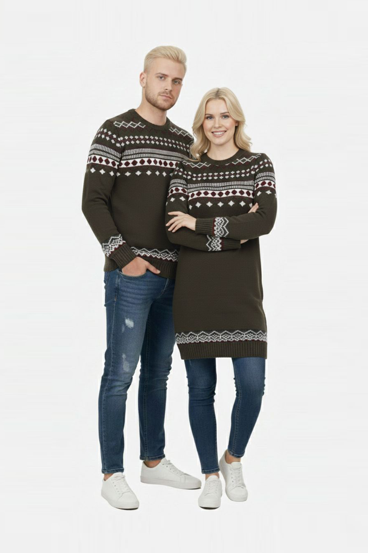 Desenli Haki Tesettür Kazak Sevgili Kombini