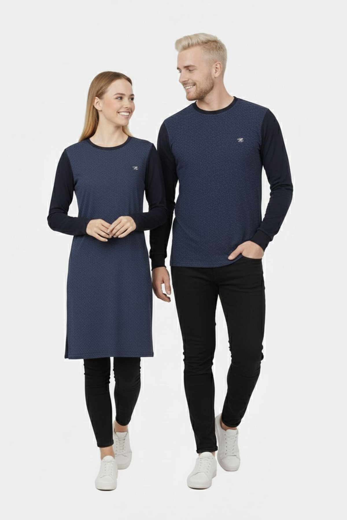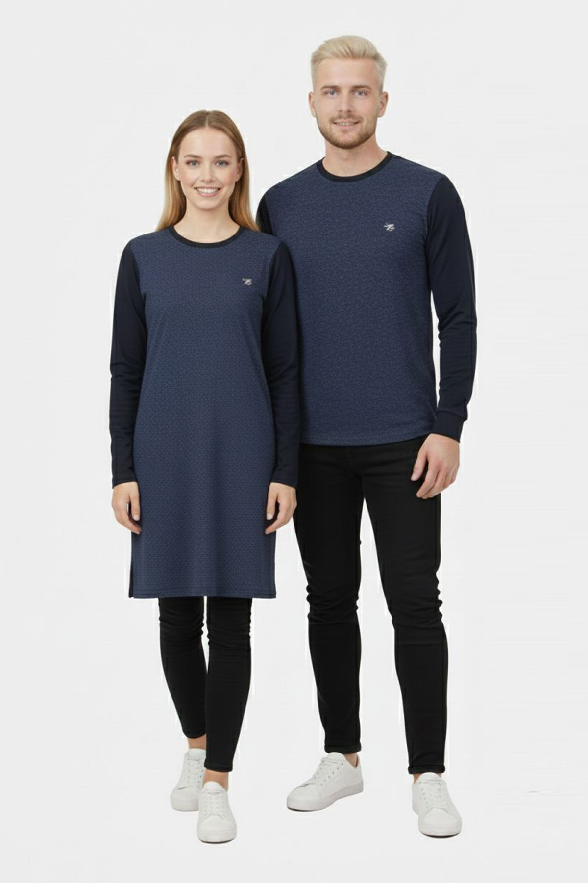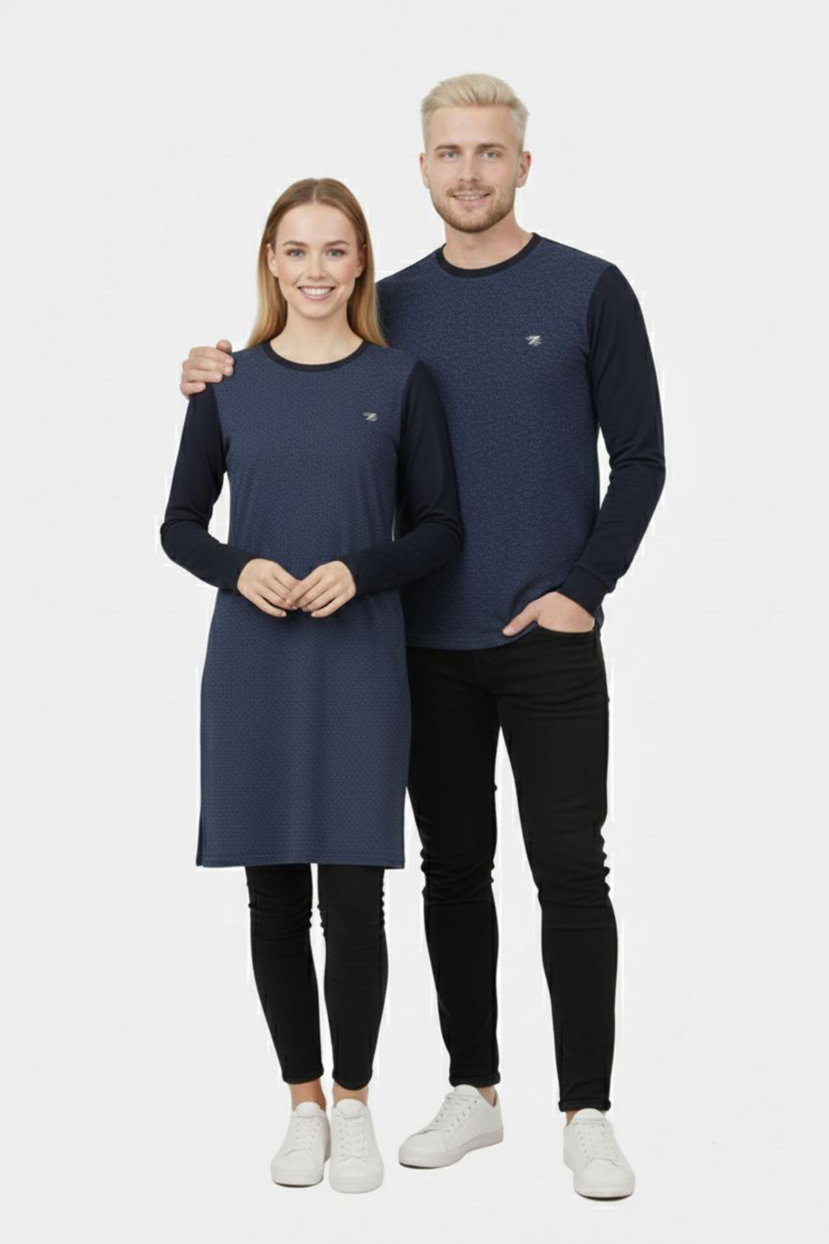 Desenli Lacivert Tunik Ve Triko Sevgili Kombini