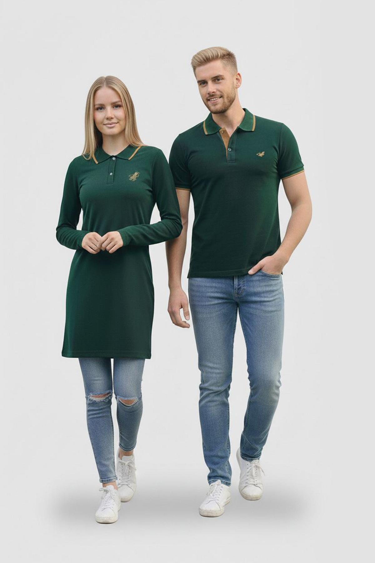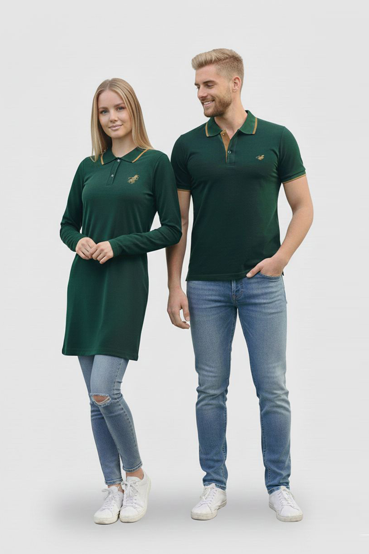 Düz Haki Tunik Ve Tişört Sevgili Kombini