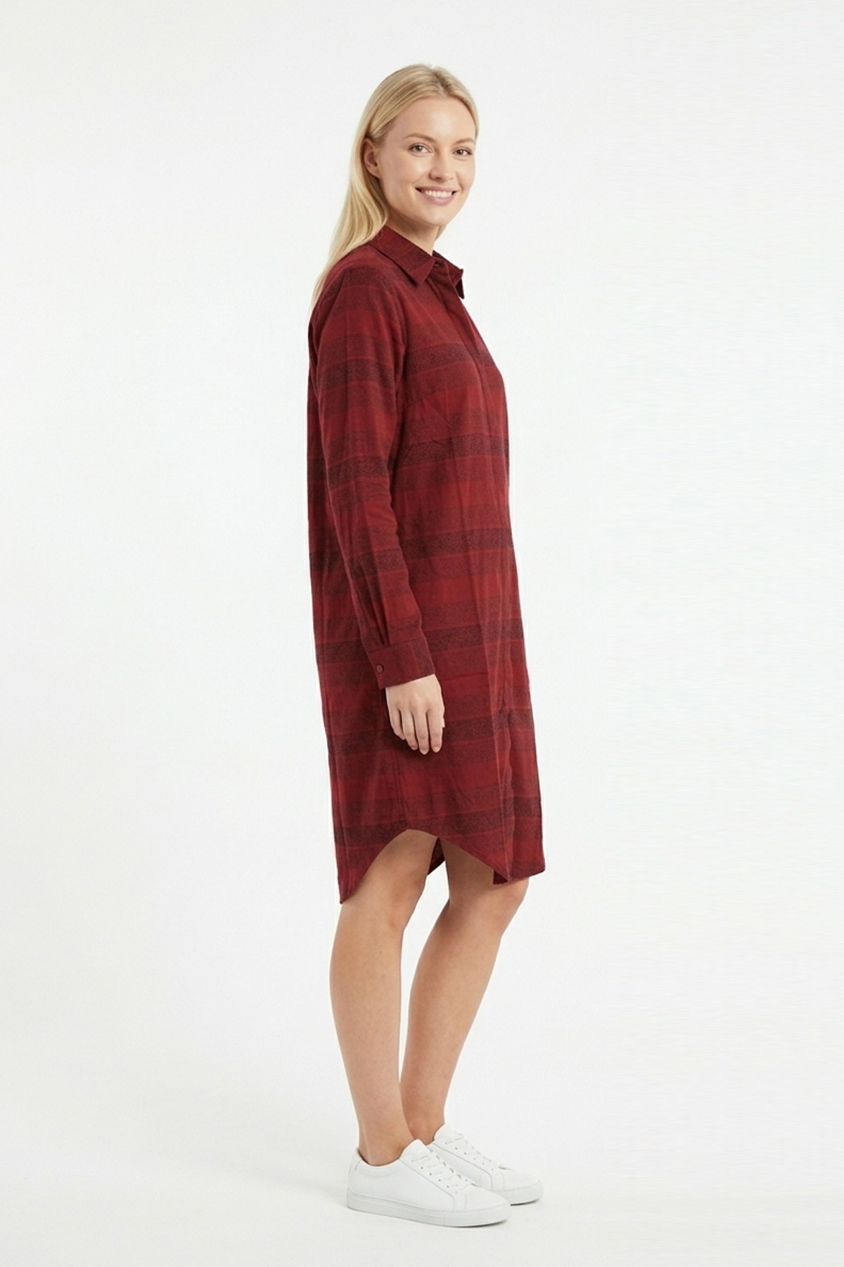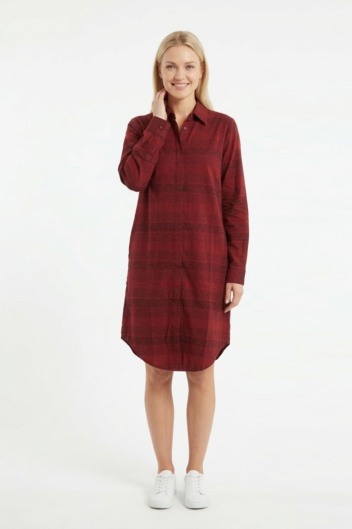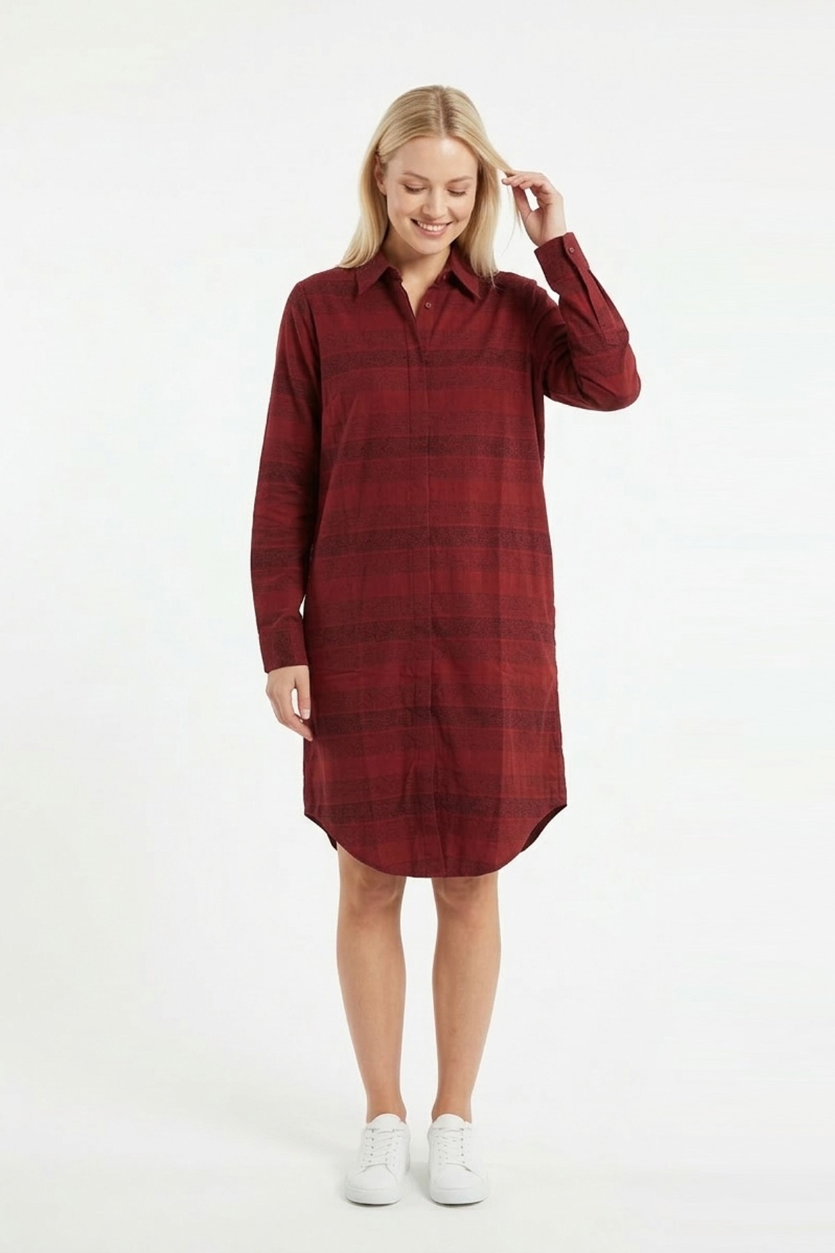 • Kadın bordo yatay çizgili gömlek tunik elbise, modern ve şık tasarımıyla günlük kombinlere zarif bir stil kazandırır;