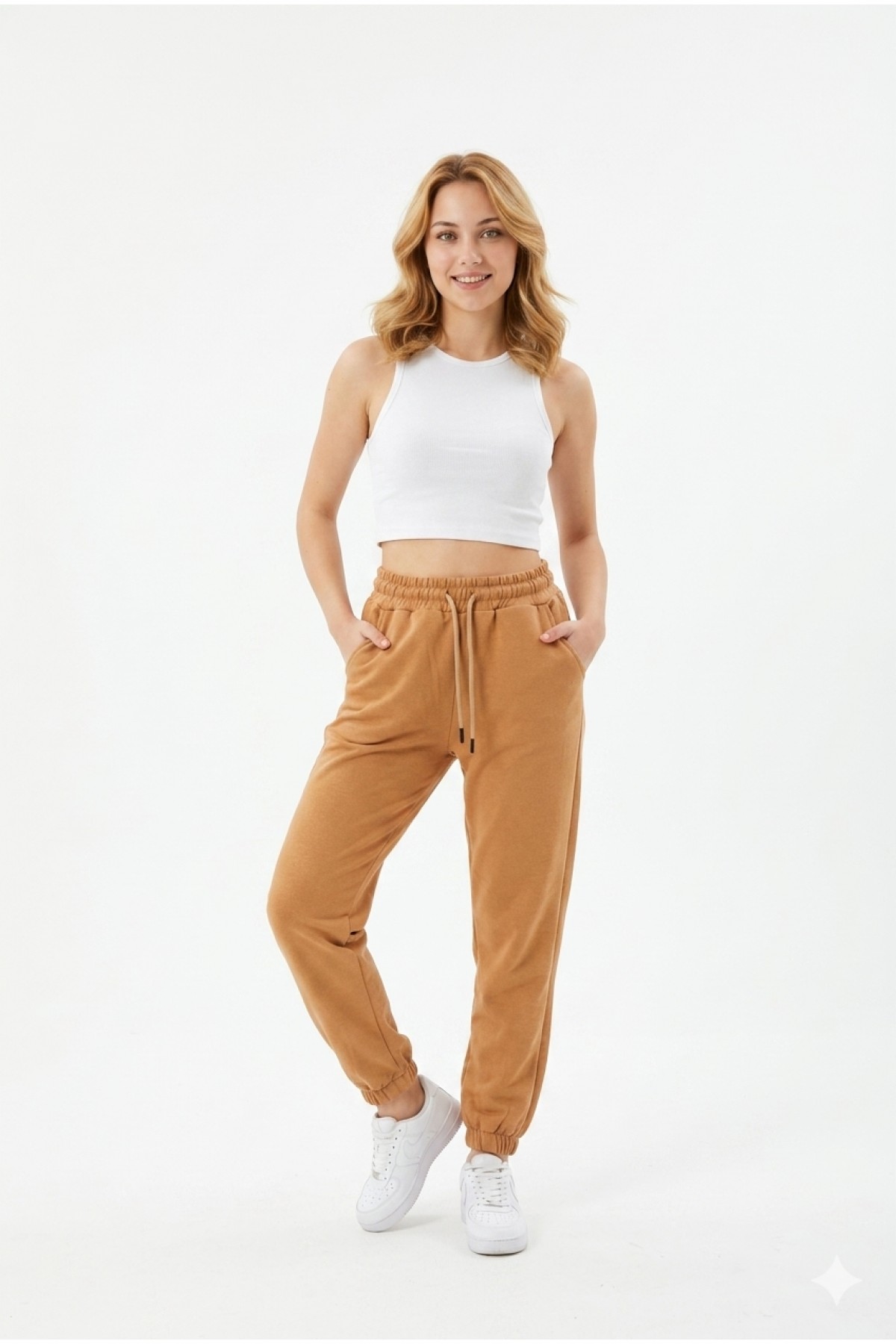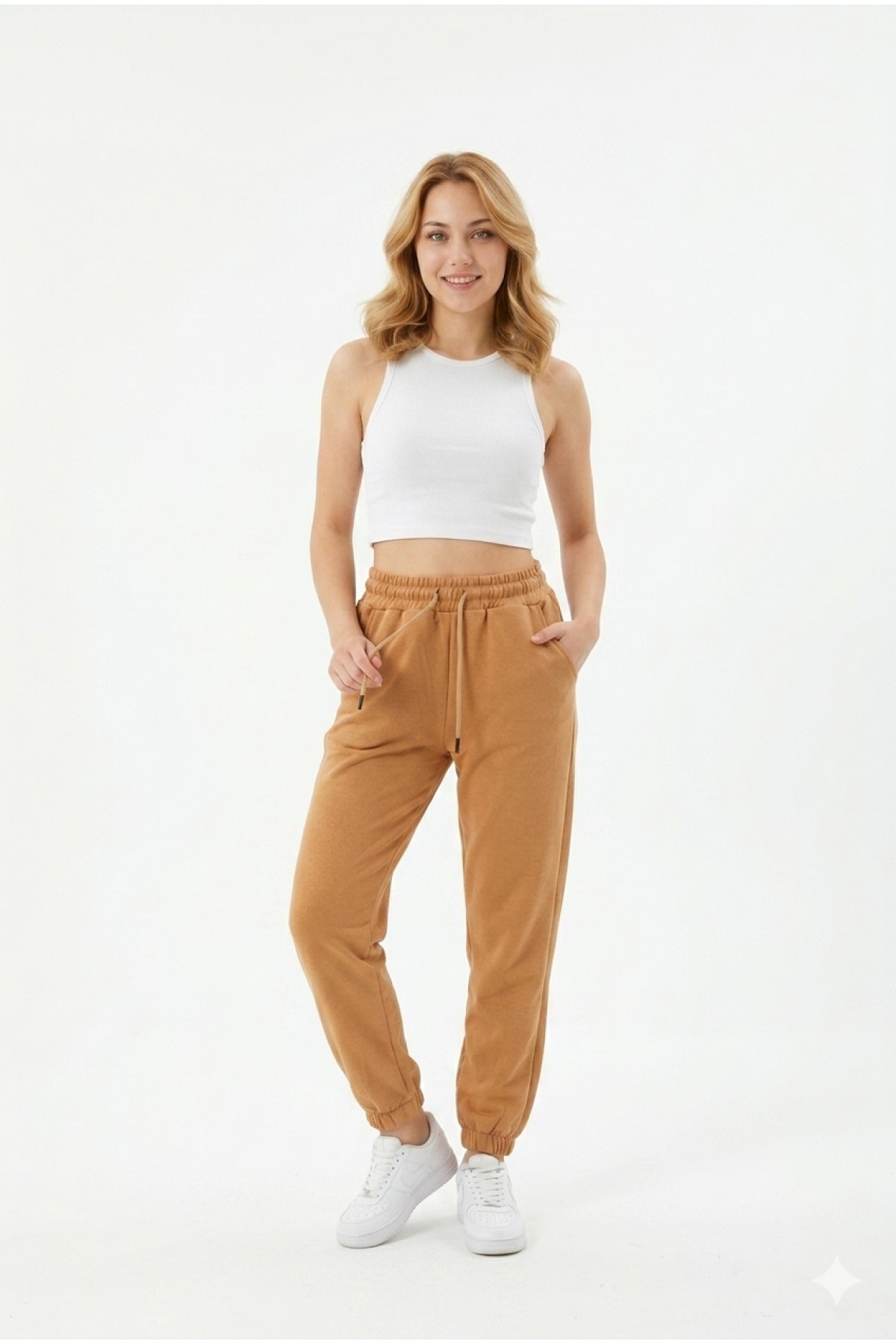 Kadın İki İplik Lastik Paçalı Rahat Kesim Cepli Günlük Spor Alt Eşofman