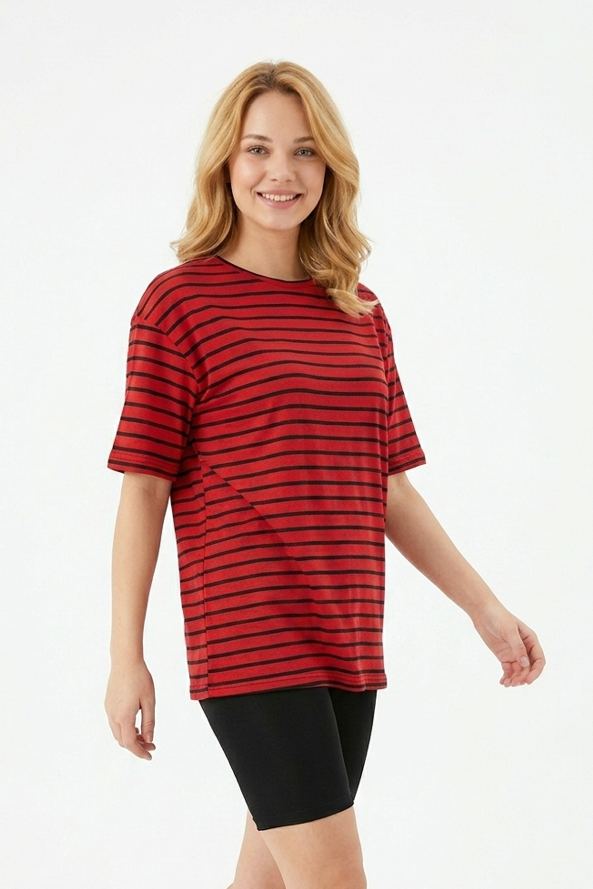 Kadın Yatay Çizgili Bisiklet Yaka Slim Fit Pamuklu Kısa Kollu Yazlık Tişört Kadın Yatay Çizgili Bisiklet Yaka Slim Fit Pamuklu Kısa Kollu Yazlık Tişört Kadın Yatay Çizgili Bisiklet Yaka Slim Fit Pamuklu Kısa Kollu Yazlık Tişört