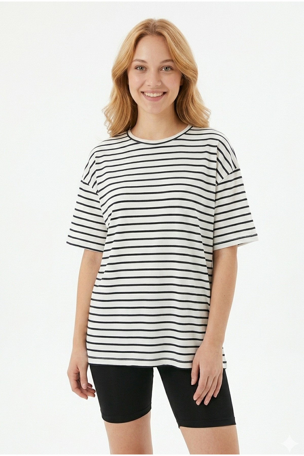· Kadın yatay çizgili bisiklet yaka slim fit tişört, modern ve şık tasarımıyla günlük kombinlerin vazgeçilmez parçasıdır;