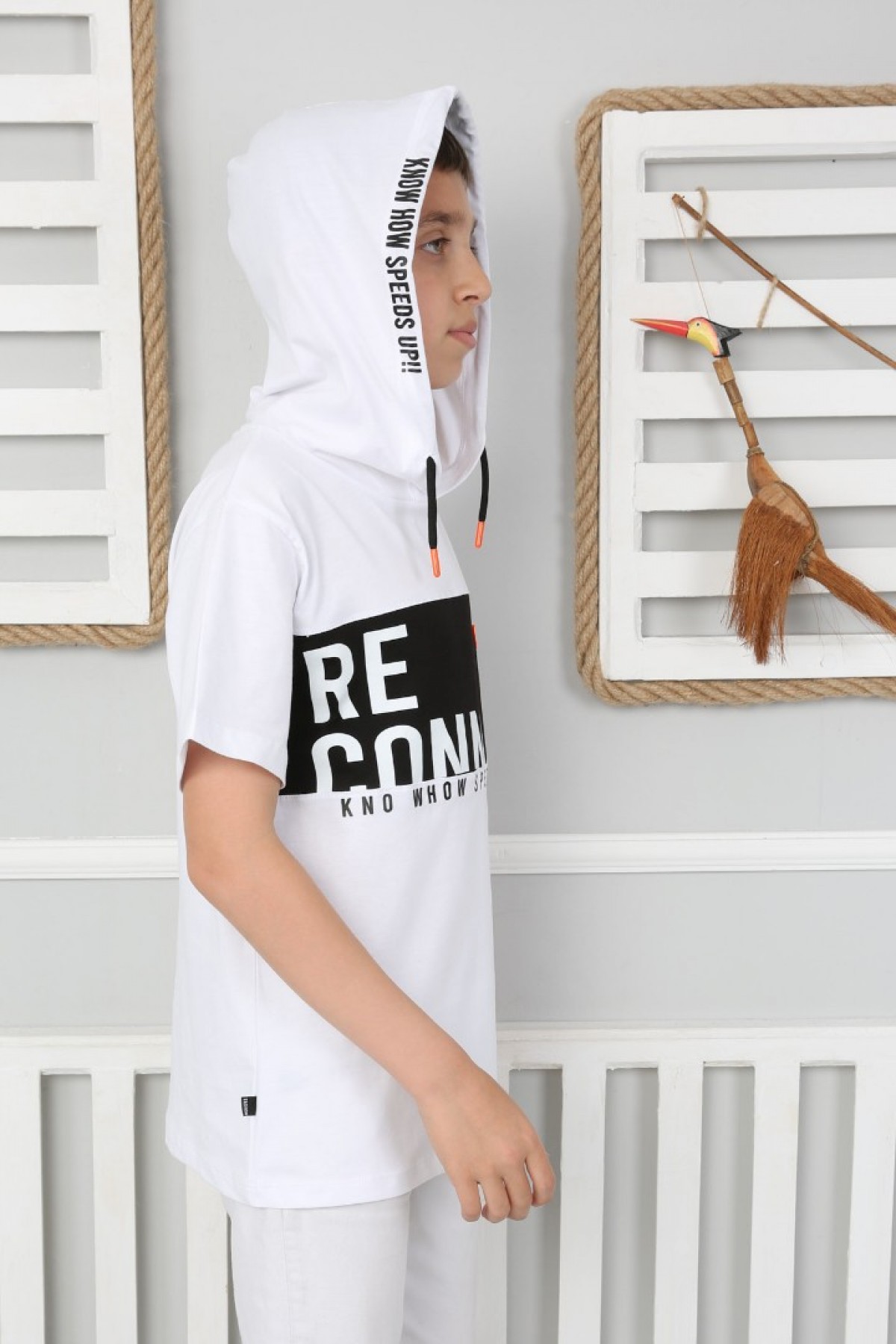 Kapşonlu Baskılı 100% Cotton Beyaz Tişört