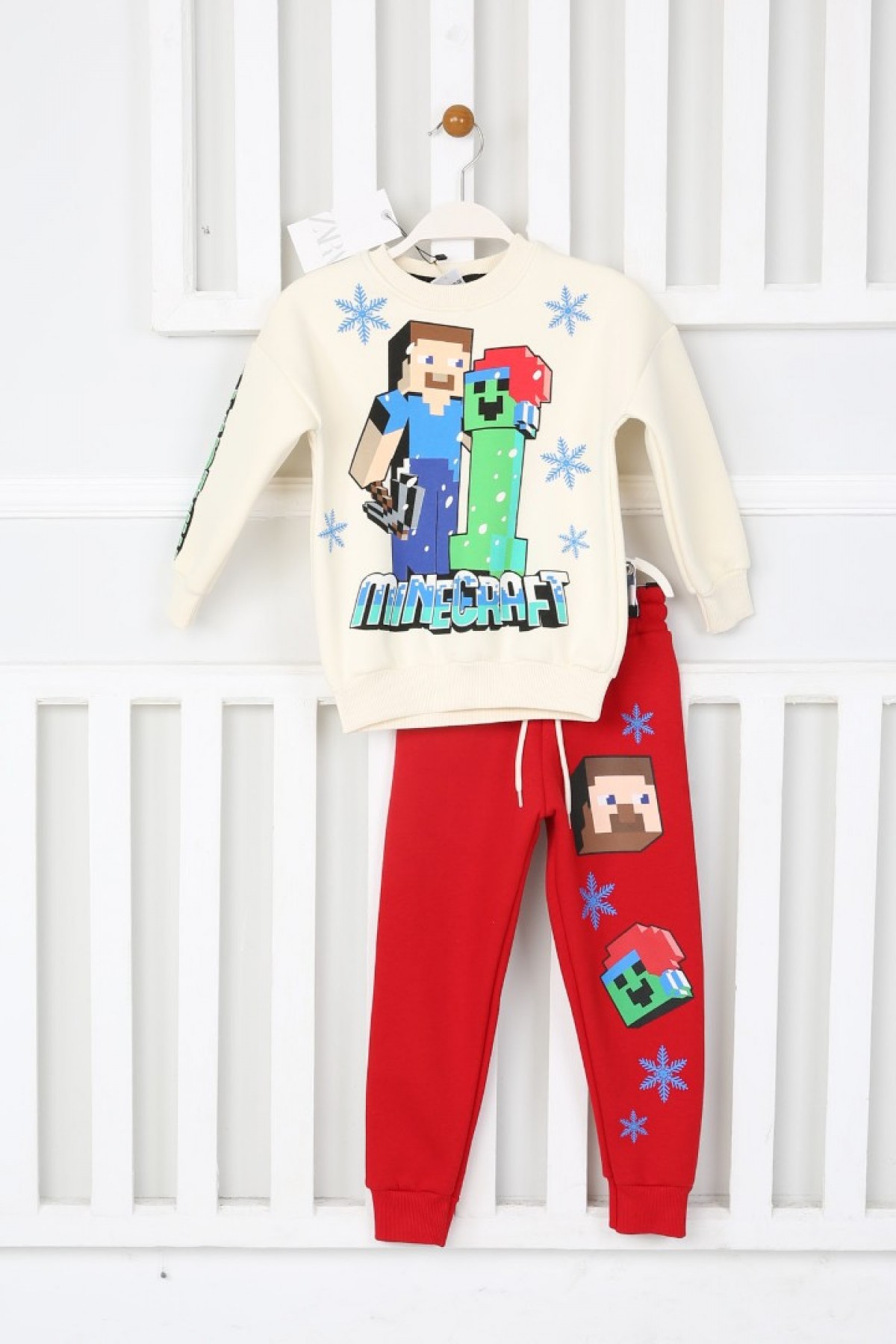 Üç İplik Şardonlu Baskılı Kırımızı Takım