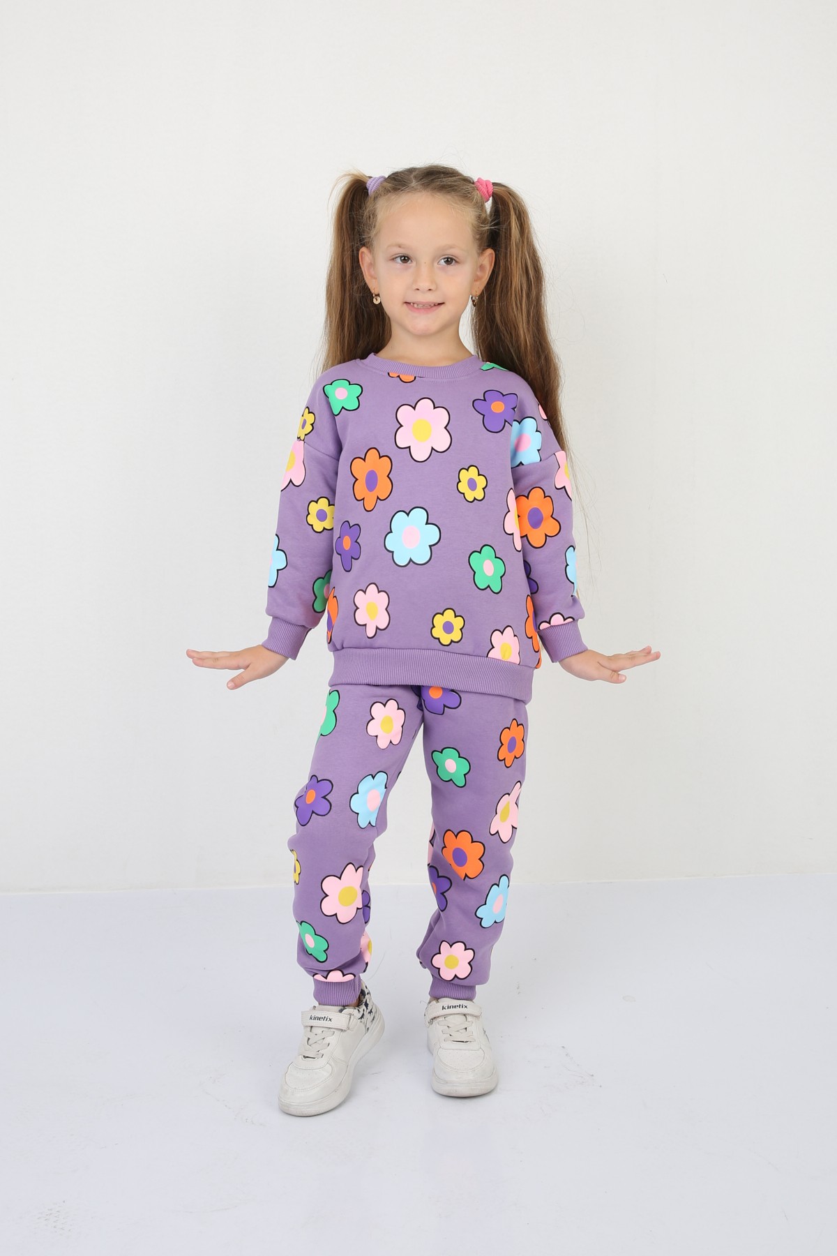 · Üç iplik şardonlu kız çocuk günlük takım, sıcak ve konforlu kullanım sunar;